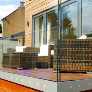 A sleek, modern design with minimal hardware, allowing uninterrupted views. Ideal for balconies, terraces, and pool enclosures.