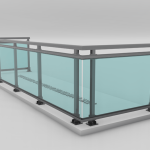 A specialized Alumcore railing system designed for easy elevation adjustments, ensuring precision alignment for glass panels.